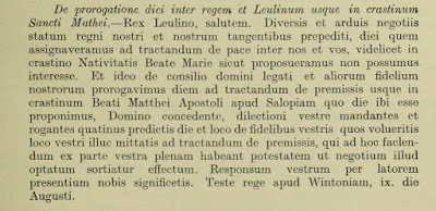 At London, in October, Dafydd was obliged to go further. He had no direct heir, so Henry induced him to accept feudal law, whereby his land would escheat to the crown upon death. The document states that Dafydd did this of his own free will - "donacione inter vivos" - though we may entertain reasonable suspicions. He also surrendered the manor of Ellesmere, the Welsh cantref of Tegeingl, and the castle and lands of Degannwy.