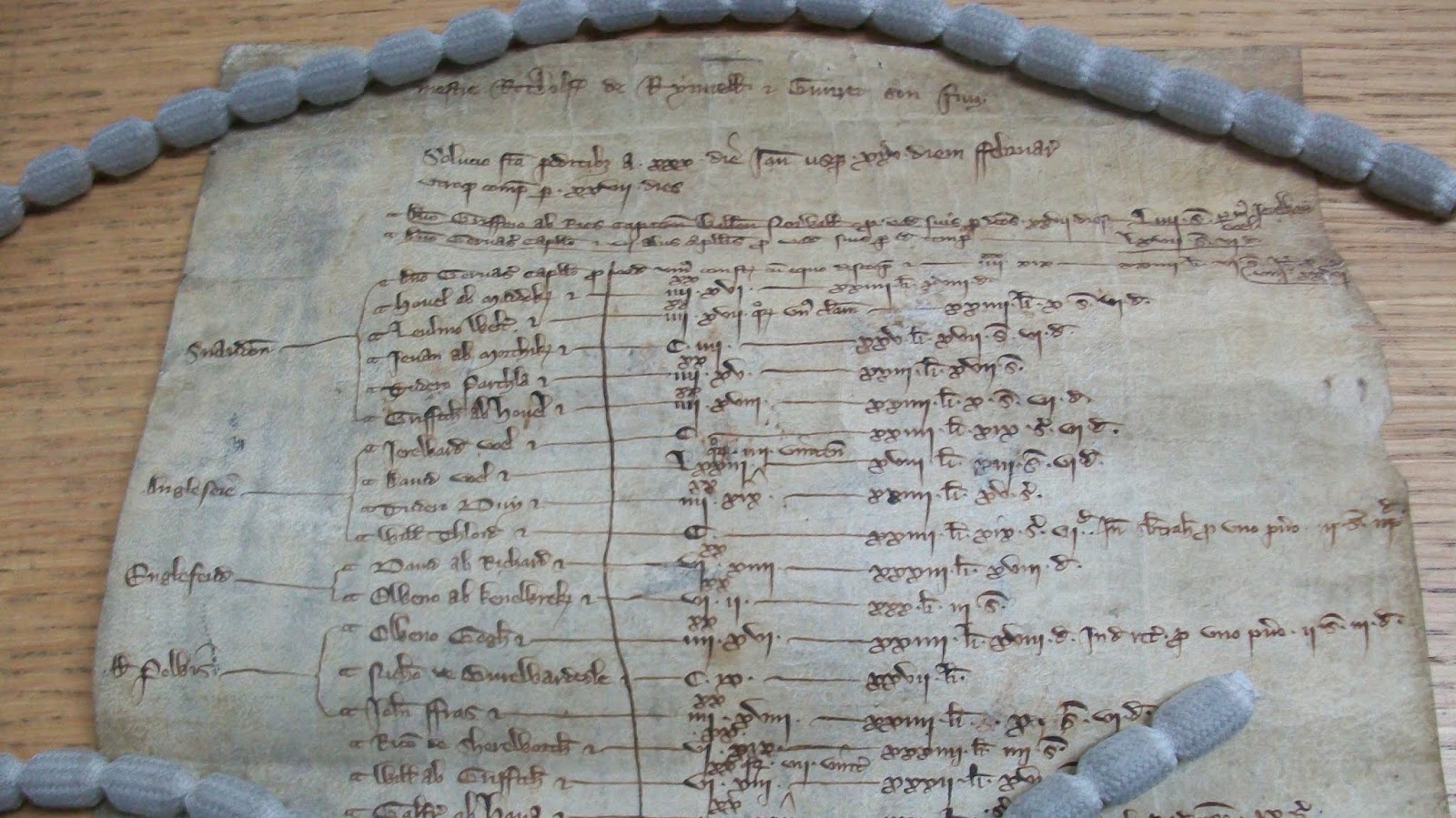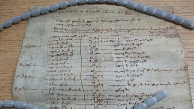 The first draft of the Statute of Wales, photographed by me at the National Archives last week. This is an earlier, separate document to the official version of the statute that was declared at Rhuddlan in 1284. The burnt edges suggest it suffered during a great fire that destroyed many documents in 1731, and the content is different in some respects to the final version of Rhuddlan.