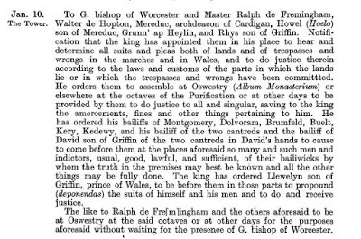 “The king has ordered Prince Llywelyn ap Gruffydd of Wales to be before them in those parts to propound the suits of himself and his men and to do and receive jusice”.