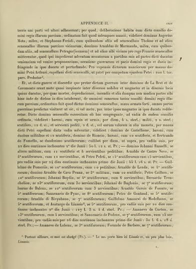 The soldiers these men brought are styled in the rolls as ‘militibus’ (knights), ‘scutiferis’ (esquires) and ‘servientibus’ (foot-sergeants). The details of each lord and the strength of his retinue are provided, such as: