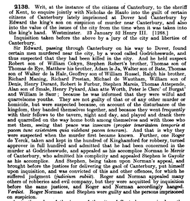 A few years later, in 1269, Edward gave more solid proof of his interest in common justice. While travelling on the road between Canterbury to Dover, he discovered some corpses lying in the woods. Edward suspected foul play and immediately set up a jury, where he accused several local men, ‘wilful and quarrelsome youths’, of doing the deed. Eventually two other men, not members of the gang, were convicted and hanged after trying to pin the guilt on each other. In this instance Edward’s judgement was at fault, but he was certainly taking an interest.