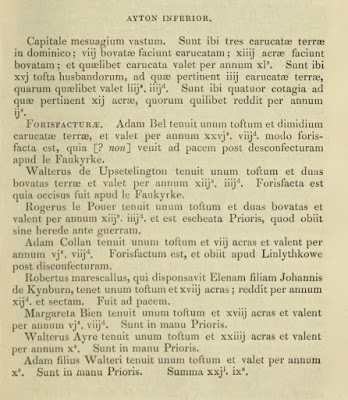 The third was Adam Bell. He held one toft and half a carucate. A toft was a house with a narrow strip of land, and a caracute a medieval unit approximating the amount of land a team of oxen could till in a single annual season. Adam, therefore, was a small landholder. He appears on the Ragman Roll of 1296, when the gentry of Scotland swore allegiance to Edward.