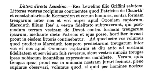 More on the tensions between the houses of Aberffraw and Dinefwr. Letter patent concerning Maredudd ap Rhys Gryg, 26 April 1258.