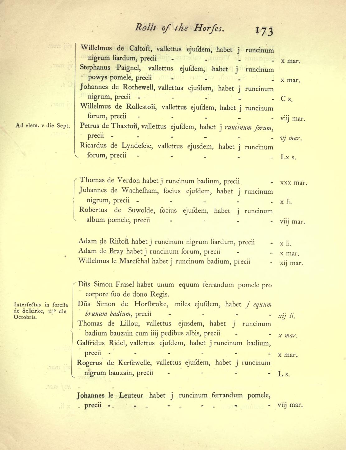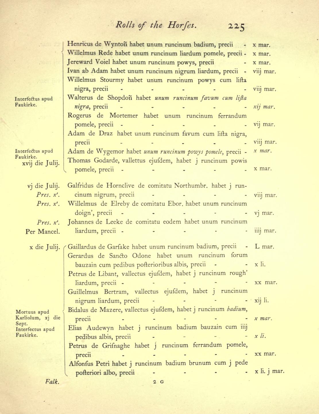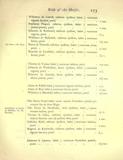 The horse-rolls for the English army at Falkirk show that Mortimer’s own troop or conroi consisted of twenty men and included three more Mortimers, Henry, John and another Roger. There were also two Welshmen, Jereward Voiel and Ivan ab Adam, and an Adam de Wygemore, doubtless raised from Mortimer’s own lordship of Wigmore on the March.