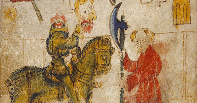 The King of the North Wind was another real-life outlaw, though we don’t know much about him. In 1336 a man calling himself ‘Lionel, King of the Rout Raveners’ wrote a threatening letter to the parson of Huntington, Yorkshire, addressed thus: