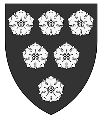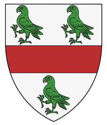 The arms of Marmaduke de Thweng, 1st Baron Thweng, an English knight of Yorkshire. Apart from his wonderful name, Marmaduke also sported three green parrots on his shield, making him an even more wonderful.