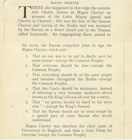 On this day in June 1215, King John was compelled to put his seal to the Great Charter by a bunch of democratically-minded barons. Yep, those barons - they were always giving it to the poor.