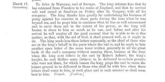On 17 March (my birthday, as it goes) 1298, soon after his return from Flanders, Edward I sent a letter to Earl Warenne. He thanked the earl for his services in the north while Edward was abroad, and asked him to continue fighting the good fight until the king could join him.