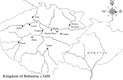 My good friend Martin Bolton has drawn a splendid map of Bohemia c.1420, which will be inside the paperback version of the book: