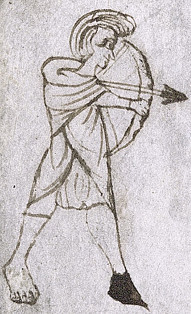 Welsh archer, from a 14th century MSThese men were paid 3 pence a day, an unusually high wage: in Edward's later campaigns English archers were paid 2 pence a day, while his Welsh mercenaries only got 1. The Weald archers were provided with tunics priced at 3 shillings each, the cloth costing in all £30, while their total wages came to £143. This was a fairly considerable outlay, and it could be that the Welsh archers employed in this campaign were regarded as elite troops. After the rebels were defeated and the Cinque Ports reduced, many of the archers were left to guard Essex as a kind of police force. What the locals made of hundreds of Welshmen garrisoning their towns and villages is anyone's guess.