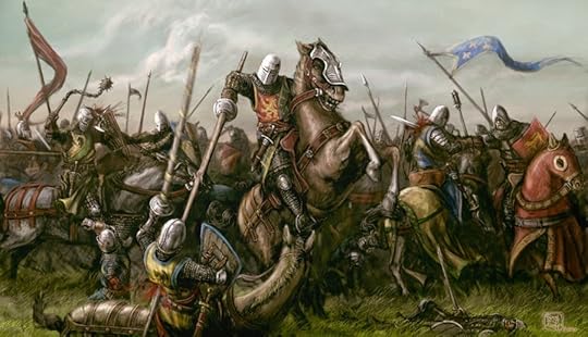 As they struggled across the river, the ranks of English knights started to break up. Seeing the enemy host apparently dissolve into chaos, the Scots launched an all-out charge. It must have been a pretty rare and glorious spectacle, hundreds of mounted knights streaming downhill, pennons waving, lances couched as the earth quaked under the racing hoofs of their destriers.