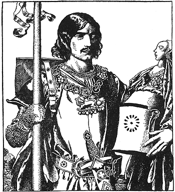 Arthur playing 'gwyddbywll' in The Dream of RhonawbyArthur barely needs any introduction. The Once and Future King is virtually inescapable, having endured and flourished over the centuries, and if anything become even more popular in recent years, starring in dozens of novels and films and plays. He has been portrayed as an atypical medieval king, sitting inside a fairy tale castle surrounded by his knights, a Bronze Age chieftain, a Dark Age warlord, a resurrected Victorian gentleman 'of the stateliest port' (Tennyson), and even a sort of green space alien thingy. The character is extremely malleable, and can be re-shaped according to the desires and perceptions of individual writers. Like Robin Hood, he has come to stand for rather basic notions of justice and virtue, and can be turned into just about anything.