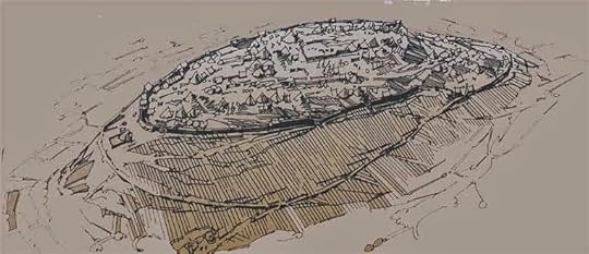 Some of the locations from the first book reappear, such as the impressive hill-fort Curia (now called Traprain Law) north of Hadrian's Wall, the restored capital Londinium, and Eburucum, capital of Britannia Secunda. Other locations such as Din Eidyn (Edinburgh) an even grander and more dramatic hilltop fortress than Curia, and Arthur's court at Caerleon, are also included. The villains are mostly Saxons, but there is also a terrifying sadist named Gwrgi Wyllt, whom I plucked from an obscure Welsh triad.