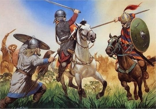 Unlike the heavily armoured knights of later legend, Artorius' men wear light mail and carry throwing javelins, round shields and long-bladed swords with a heavy chopping edge called spathas. Artorius uses them to great effect in hit-and-run attacks on Britannia's enemies. I see him as a talented guerrilla fighter and captain of light horse, more a Cossack than the medieval European king he later became in fiction.