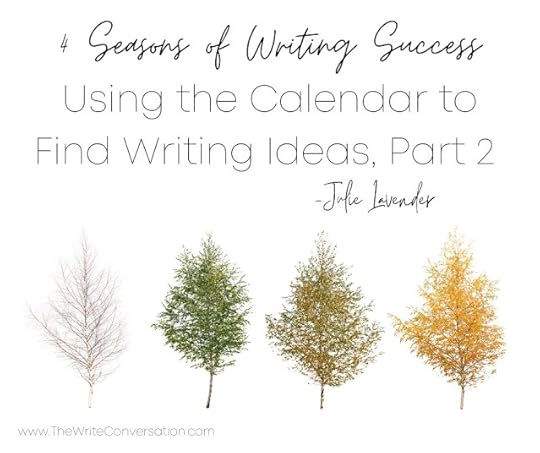 TWEETABLEUsing the Calendar to Find Writing Ideas, Four Seasons of Writing Success, Part 2, tips from @JLavenderWrites on @EdieMelson (Click to Tweet)