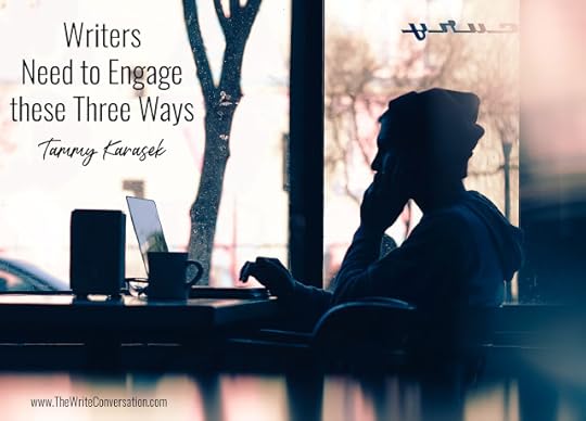TWEETABLEWriters Need to Engage these Three Ways, tips from @TickledPinkTam on @EdieMelson (Click to Tweet)