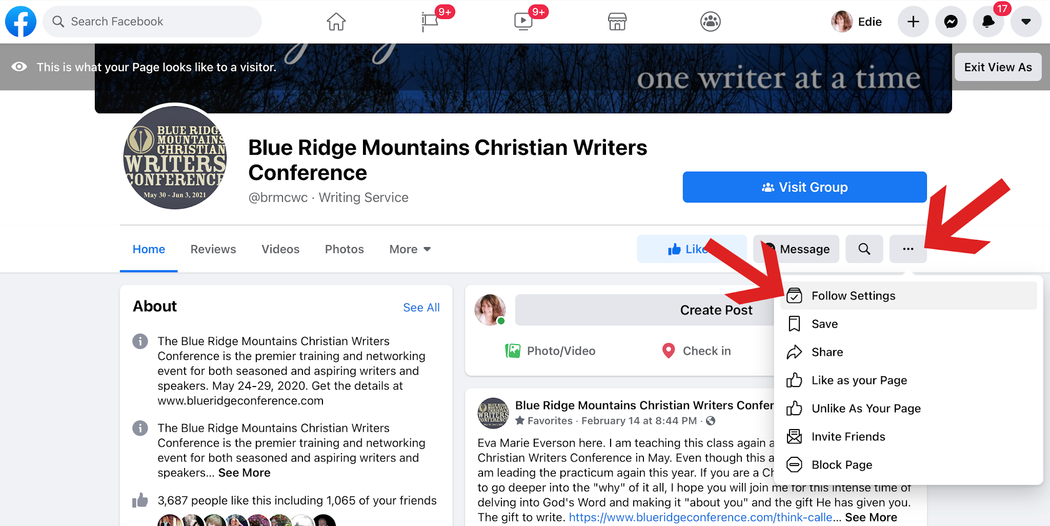 Click the three dots icon below the right corner of the cover image (see screenshot below).