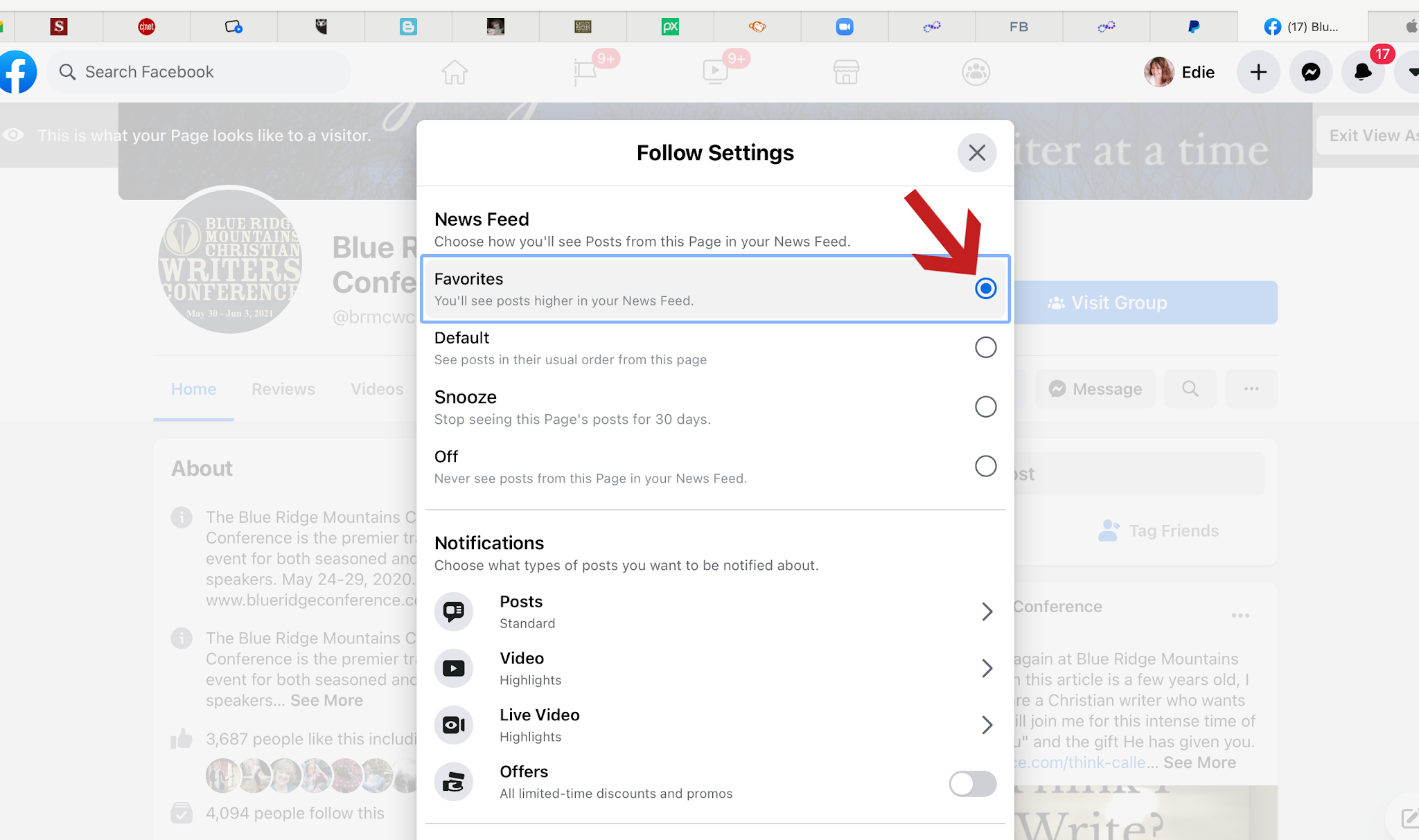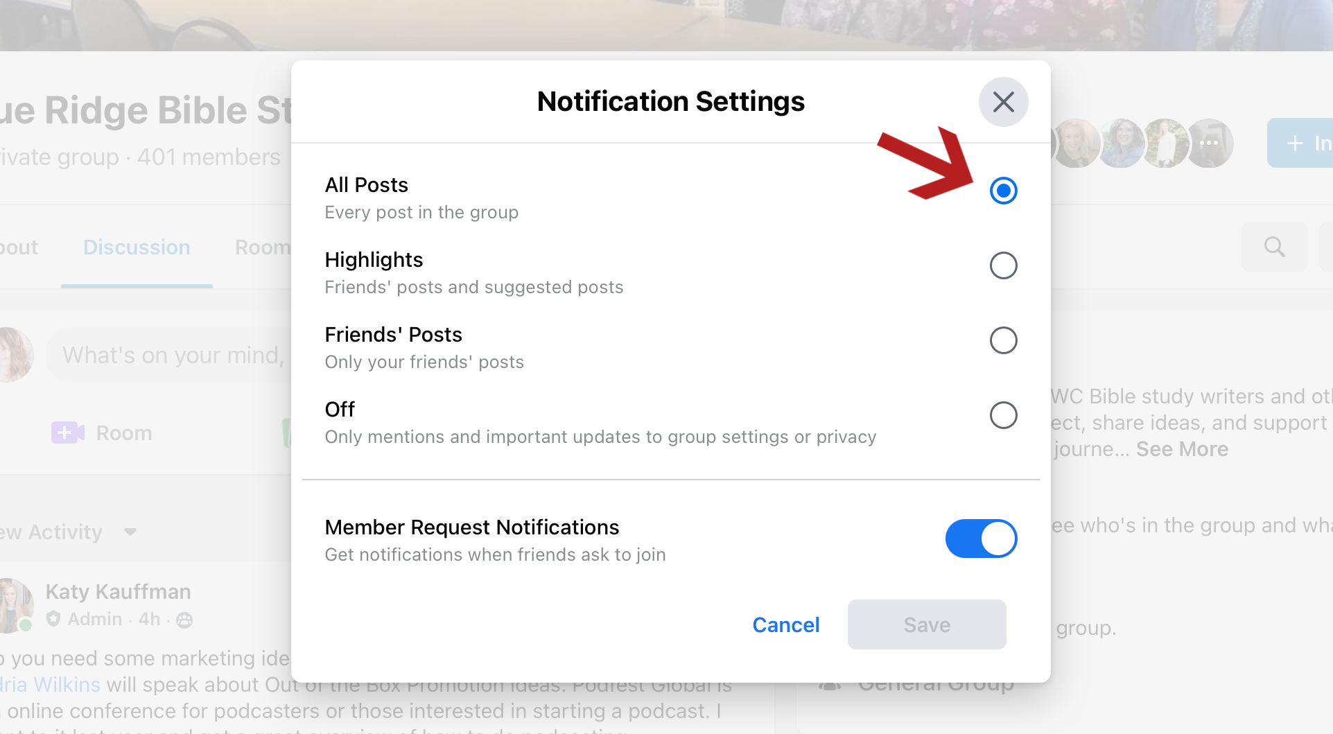 Now click MANAGE NOTIFICATIONS and choose ALL POSTS (see screenshot below).