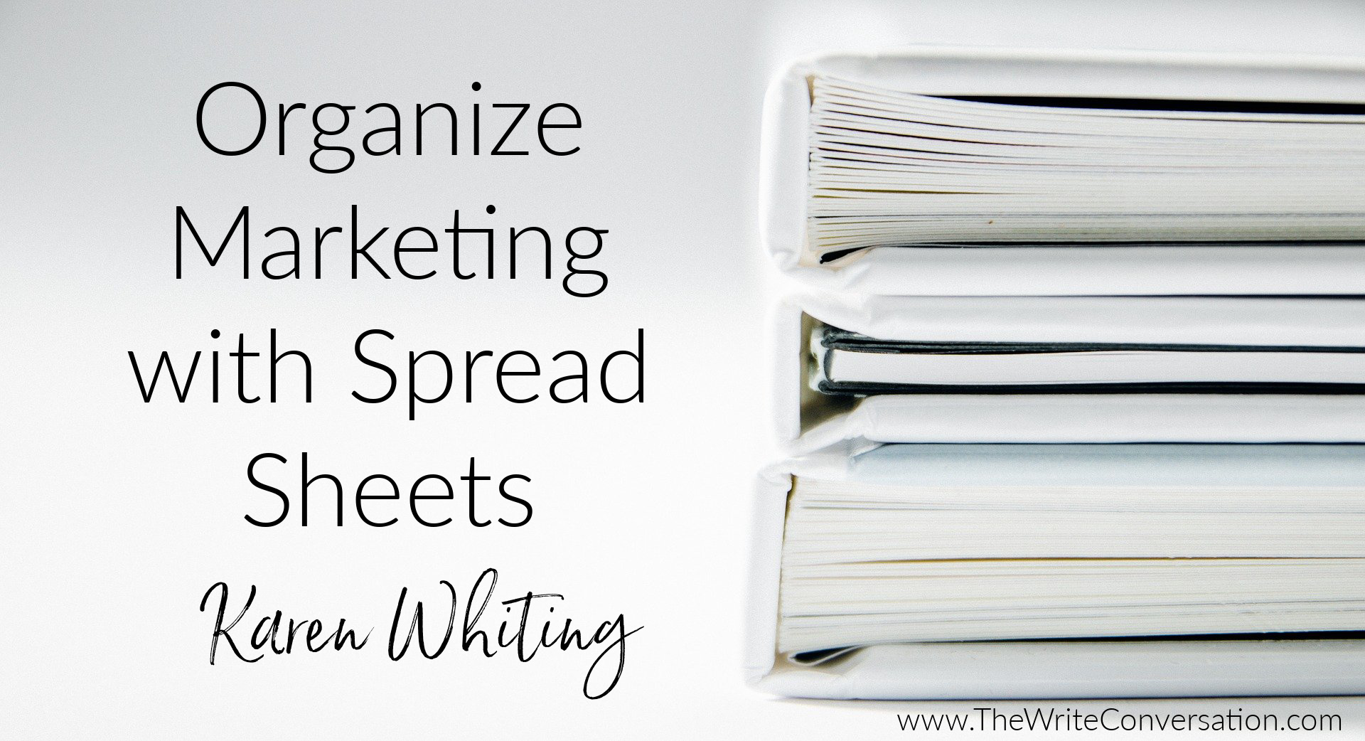Create spread sheets to hold information for influences, media, and bloggers where you’d like to be interviewed or be a guest blogger. This would include the contact information, host, title of the show/blog and your pitch ideas. These can be used for a current book as well as all future books. Add to this as you discover shows or blogs that match your topics.