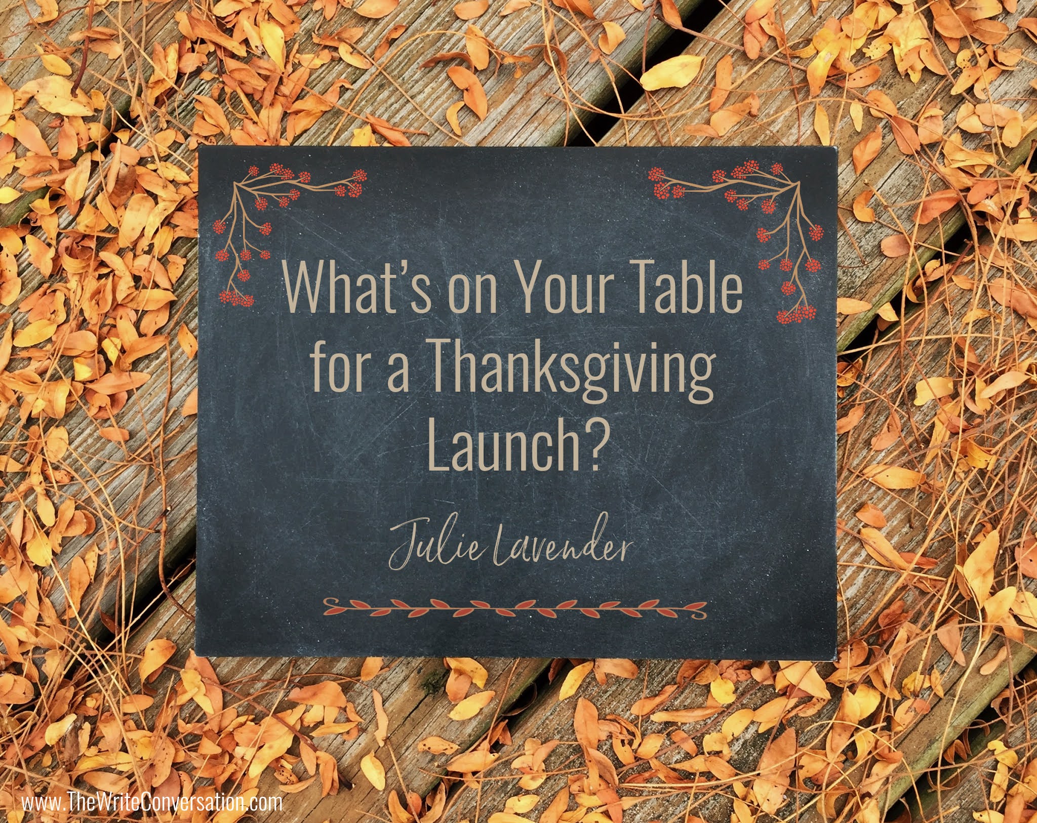 The month of November is a great time to celebrate the launch or recent launch of a book, because November encourages hearts and minds to be grateful for every small blessing and all those monumental ones, too. And what could be more monumental than launching a much-awaited book? Here are my nine offerings for a Thanksgiving launch buffet that I hope can also remind you to keep a spirit of gratefulness in your heart as you launch or prepare to launch a manuscript!