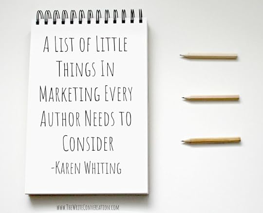 by Karen whiting @KarenHWhitingAddress labels add a photo of your bookAdd author to your checksAdd a card or sticker inside your book inviting readers to review your book, join your newsletter, and follow you on social mediaTWEETABLEA List of Little Things In Marketing Every Author Needs to Consider - @KarenHWhiting on @EdieMelson (Click to Tweet)