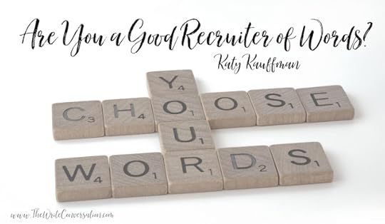 It matters the words we choose. Stir up or incite? Weaken or languish? Move or sway? When you consider which word to write next, do you also consider the power behind the word? How it sounds to the reader’s inner ear? What picture it portrays? You are more than just a writer of words—you are a recruiter as well.