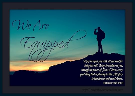 Then the glimmer of writing fiction stirred in my heart. And the equipping continued. Books on writing, writing conferences and classes, critique groups, critique partners, mentors, coaches, developing a learning heart and a thick skin. All designed to teach me the craft and the business of writing, to humble myself before Him, to submit to His plan and will for my life.