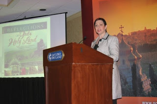 Eva Marie at IMOT breakfast.With the release of the book, I spoke at IMOT’s 2008 VIP breakfast at NRB. There I met a man who introduced me to Arie Sommer (Are-ee-a Zo-mayor) who, in turn, asked me to put together what I would consider to be the greatest media tour in Israel. I did exactly that and, in 2009, Miriam and I guided Joe Diaz (IMOT) and five writers—Larry Leech, Cheri Cowell, Ellie Kay, Sharon Decker, and Robi Lipscomb—from the southern deserts to the northern hills and back to Jerusalem.