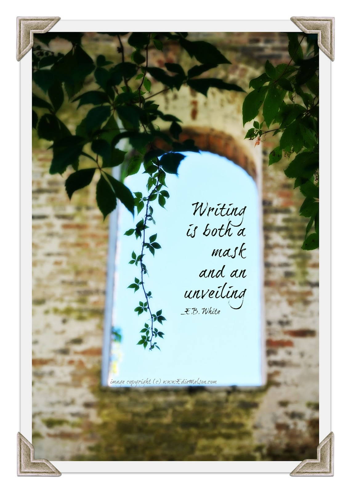 #Writing is Both a Mask & an Unveiling - an E.B. White quote & #socialmedia image to share (Click to Tweet)