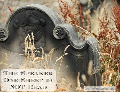 I heard someone say recently that the speaker one-sheet was dead. Well, just as Mark Twain said reports of his death were greatly exaggerated, reports of the death of one-sheets is exaggerated as well.