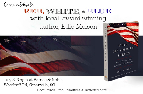 But today I'm breaking my rule and asking for your help. This Friday, July 3, I'm having a big book signing at our local Barnes and Noble. I'll be signing copies of While My Soldier Serves.