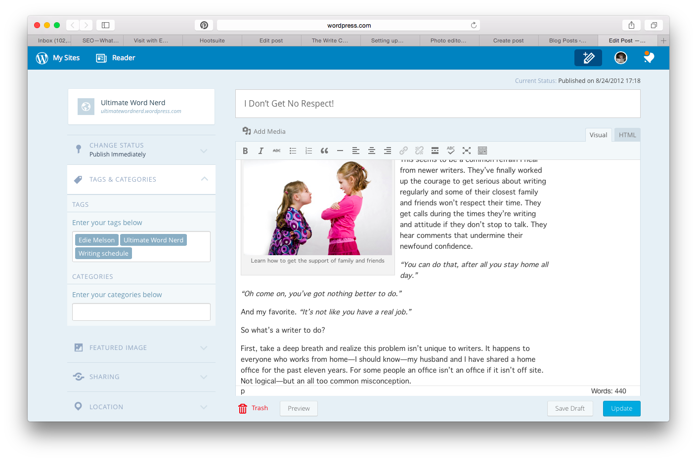 4. If it’s different from your name, always include your blog title (for example, my blog title is The Write Conversation) as one of the labels/tags.