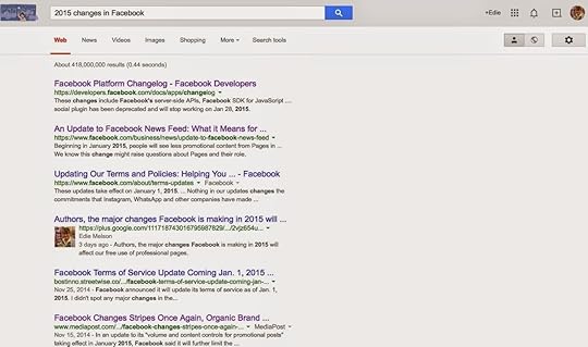 The picture below is a screenshot of where my blog post about the 2015 Facebook changes showed up in a Google search. Just FYI, it's number 4 out of about 416,000,000. Not bad.