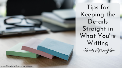 TWEETABLETips for Keeping the Details Straight in What You're Writing from Henry McLaughlin (@RiverBendSagas) on @EdieMelson (Click to Tweet)