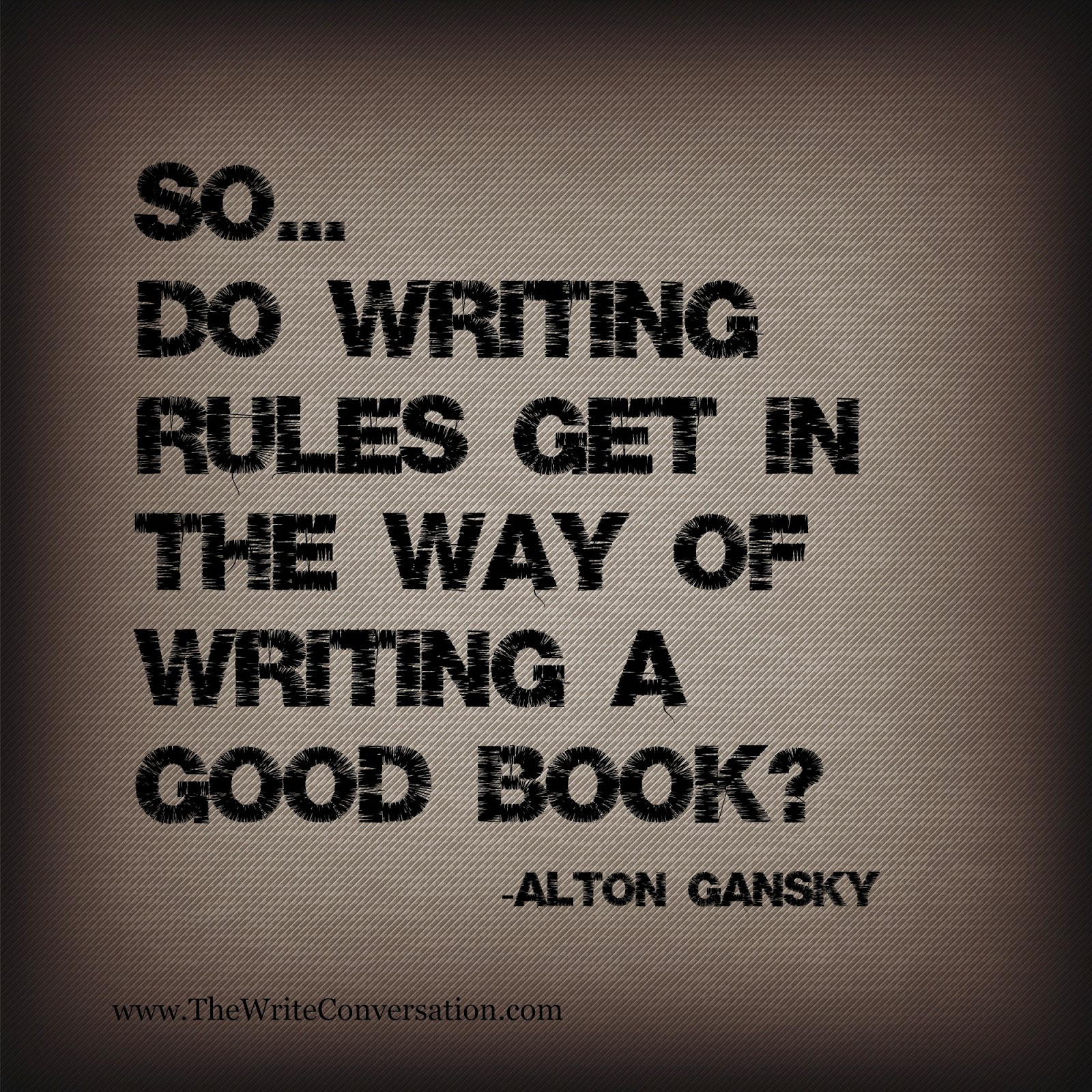 TWEETABLESCan #Writing rules get in the way of writing a good book? - via @AltonGansky on @EdieMelson (Click to Tweet)