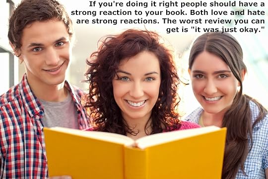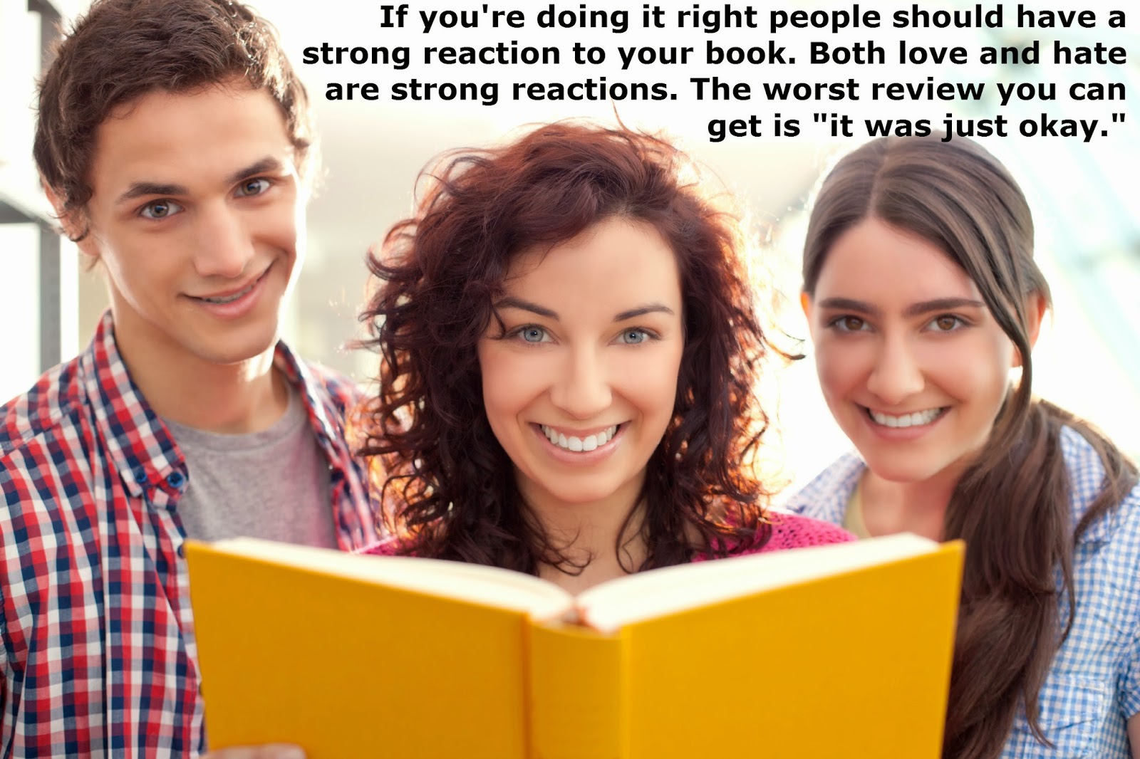 Reviews exist not to make authors feel great about the book they wrote but to help readers decide if they will enjoy reading the book or not. Not everyone will love your book and that's okay. Your story is meant to give the reader an emotional reaction—but person to person that reaction is going to differ. If you're doing it right people should have a strong reaction to your book. Both love and hate are strong reactions. The worst review you can get is "it was just okay." Keep that in mind as you write and release books. Not one book in the history of mankind has been liked by all—yours will not be the exception. …remember, some people are mean for the sake of being mean.