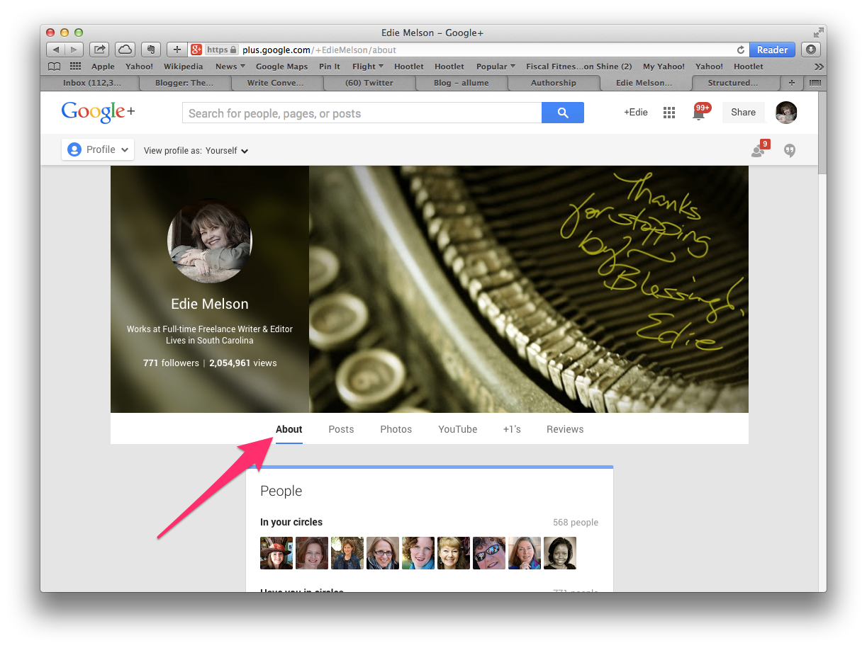 4. Now you’re going to have to modify your Google+ account. Go to your Google+ profile and click on ABOUT (see screenshot below).