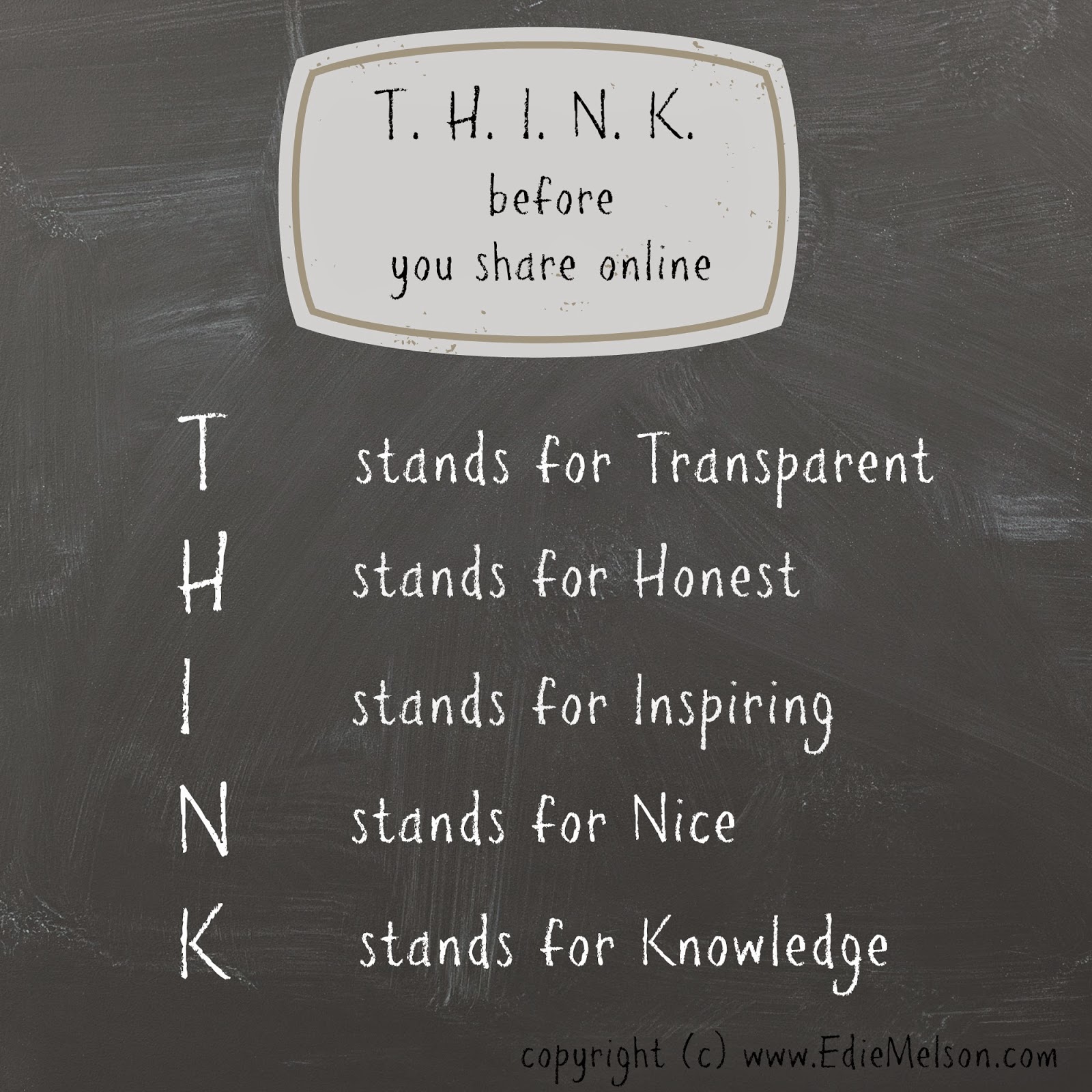 T. H. I. N. K. Before You Share Online - a #socialmedia filter from @EdieMelson (Click to Tweet)