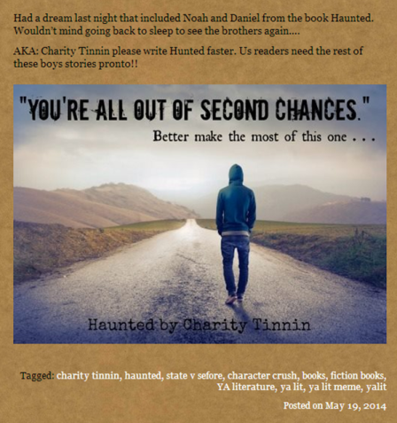 4) Create memes (did you know the rise of memes happened because of Tumblr?) about the book using quotes or pictures that remind you of the characters. When you upload it make sure to tag the author, the title, the genre and add meme: #ya lit meme