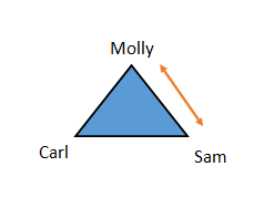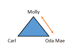 The top point is always the protagonist. In this particular story, each character is a protagonist in their turn, but we’ll start with Molly. Molly’s interactions (scenes) with Sam prior to his death show their love for each other. Their life together seems almost perfect. But, upon Sam’s death, Oda Mae shows up with a totally unbelievable story that Sam is a ghost using her to communicate with Molly. So, we have tension on all three sides – Molly grieving Sam’s death and refusing to believe Oda Mae is telling the truth, Sam trying to get Oda Mae to cooperate and to tell Molly about her danger, and Oda Mae in the middle just trying to get rid of the crazy voice in her head. Their complex and detailed relationships are what make the movie work so well because the audience can relate to the ups and downs of the story as we watch the characters struggle, each in their own way.