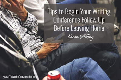 TWEETABLETips to Begin Your Writing Conference Follow Up Before Leaving Home from author @KarenHWhiting on @EdieMelson (Click to Tweet)