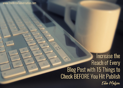 TWEETABLEIncrease the Reach of Every Blog Post with 15 Things to Check BEFORE You Hit Publish via @EdieMelson (Click to Tweet)