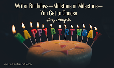 TWEETABLEWriter Birthdays—Millstone or Milestone--You Get to Choose, from author Henry McLaughlin (@RiverBendSagas) on @EdieMelson (Click to Tweet)