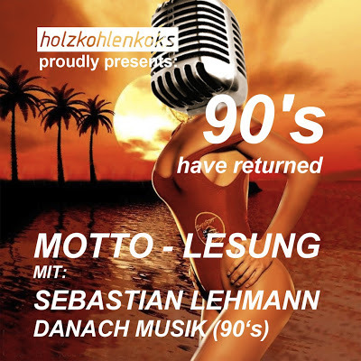 90's-Geschichten und Song-Übersetzungen der größten Hits aus den 90ern und danach natürlich auch noch Musik und Bier. Das alles mit mir in der Neuköllner Galerie HolzKohlenKoks. Hier geht's zum Facebook-Event.