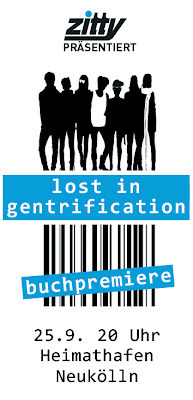 Man kann es zwar schon seit ein paar Tage kaufen, aber ohne so eine echte Buchpremieren-Lesung ist ein Buch noch nicht richtig da. Deswegen feiern wir am 25. September endlich die Release von "Lost in Gentrification", der Anthologie zum aktuellen Trend-Thema. Yeah.Es lesen: Tilman Birr, Uli Hannemann, Maik Y., Frank Klötgen, Kirsten Fuchs, Heiko Werning, Volker Surmann und ich.