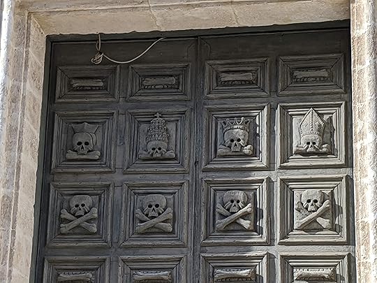 Yes, those are skulls and bones on the doors of that church--including skulls with crowns and important headdresses, just in case everyone needed the reminder that even rich and powerful people will die.