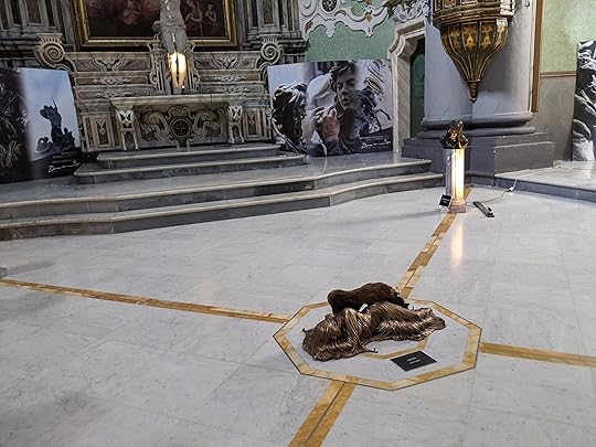 ,Anyway, there were these really cool (and sometimes creepy) bronze statues scattered throughout the church. It was felt like a very fitting display for this unique church, dedicated to purgatory.