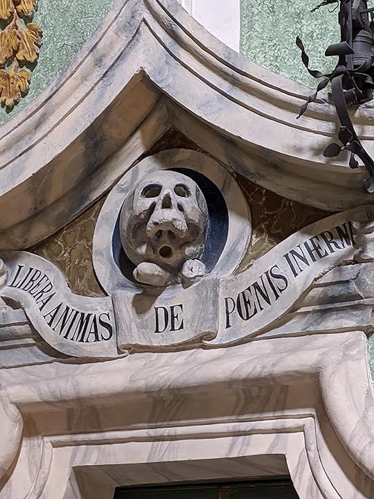 And then, in case you forgot we were in a chruch dedicated to purgatory, notice the skull above the door...