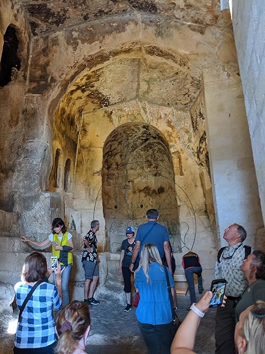 All along the mountainsides here are caves, and the people who settled the area turned these caves into their homes. They even made some caves into churches! Usually only a little modifying was needed to make the caves large enough to inhabit, and it kept them cooler on hot summer days.
