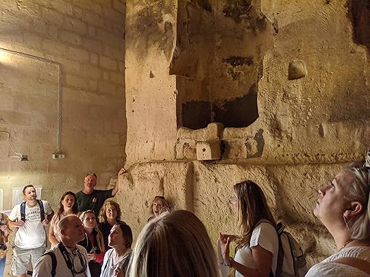 One of the coolest things we saw as we got closer to Sassi was the ,Chiesa del Purgatorio--The Church of the Purgatory. It sits right on the street, so it's hard to get a super good picture of the exterior. But it is probably the most unique church I've ever visited. (Well . . . There was another really unique church I visited later in the day . . . but let's focus on this one first!)